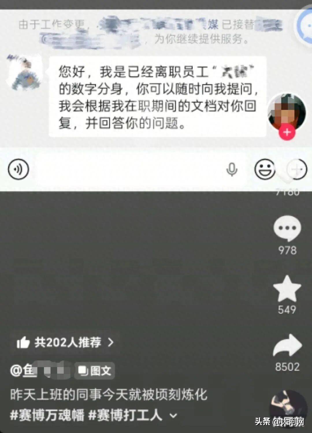 这个“炼化同事”的项目,不仅冲上了社交平台热搜,更让无数打工人破防了。网友调侃:这怎么不算另外一种形式的赛博永生呢?还有人质疑,员工多年积累的工作经验、个人数据,凭什么被公司拿去商业牟利?