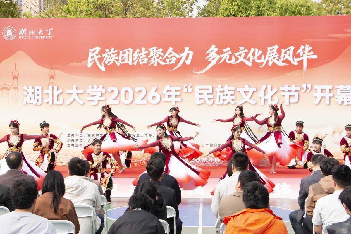4月24日,湖北大学长江新区校区化作一片欢乐的海洋。湖北大学2026年民族文化节在此盛大开幕。歌声、舞步、美食香交织在一起,绘就了一幅各民族师生交往交流交融的生动画卷。
