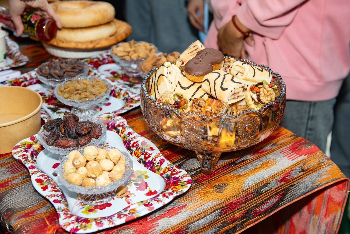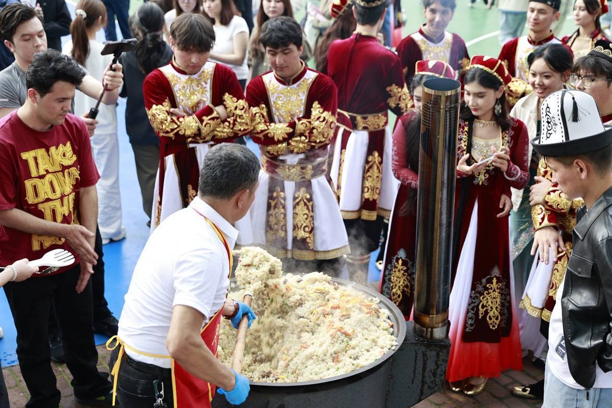 “快来尝尝,刚出锅的手抓饭!”美食摊位前,人头攒动。各族特色小吃齐聚一堂,师生们围在一起,亲手制作、共同品尝。一句“好吃”,让味蕾成为了跨文化交流最直接的桥梁。