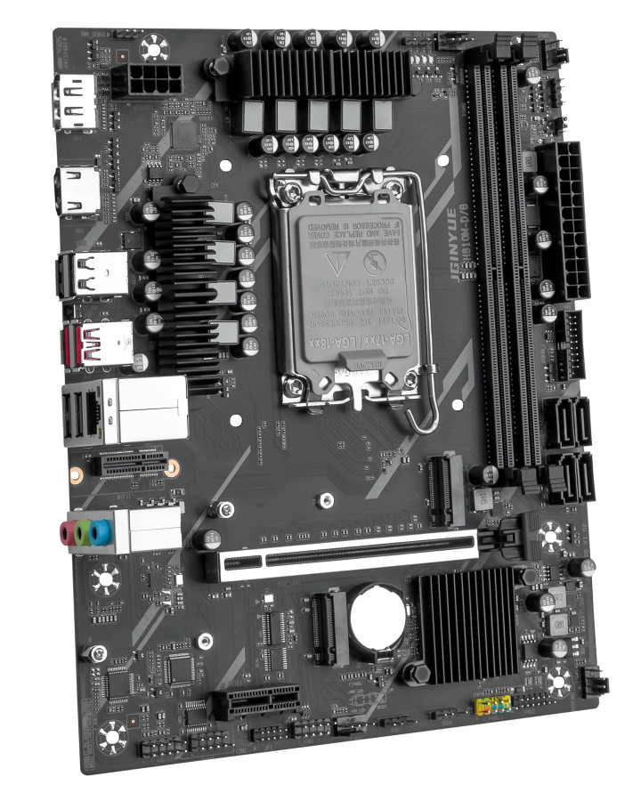 精粤H810M-D/B主板搭载9(6+1+1+1)相供电,配备齿状VRM散热片,提供2条DDR5内存插槽,PCIe扩展性方面为1条PCIe4.0×16和一条PCIe×1,存储方面则能提供1个M.2PCIe4.0×4、1个M.2PCIe4.0×2和4个SATAIII。