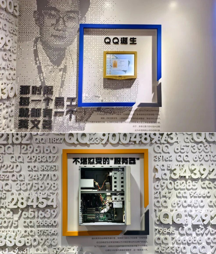 在公司墙上挂着的,不仅有1999年2月第一个版本的QQ,而且还有当时工程师自己手搓的服务器,毕竟当时的服务器对初创公司来说实在是太贵了。